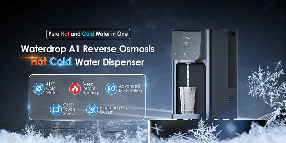 Waterdrop has designed and manufactured a cutting-edge reverse osmosis hot and cold water dispenser—Waterdrop A1, to meet the need for safe and refreshingly cold water, as well as precise hot water. This top-of-the-line countertop water system is equipped with advanced purification technology that ensures efficient filtration with every use.